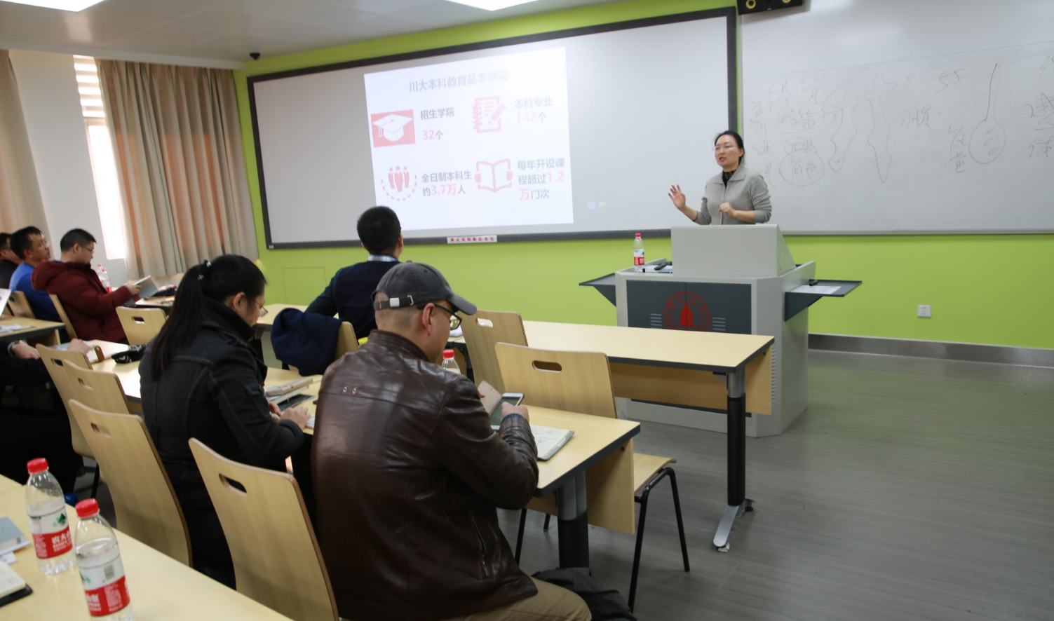 随后,兰利琼副处长作了“班主任胜任力培训之人才培养方案解读”的讲话。兰利琼副处长首先对川大本科教育基本情况作了介绍,分析了川大的人才培养目标是要培养具有“深厚的人文底蕴、扎实的专业知识、强烈的创新意识、宽广的国际视野”的国家栋梁和社会精英,希望我们的班主任能以深厚的学术功底和独特的人格魅力潜移默化地感染、引导学生。