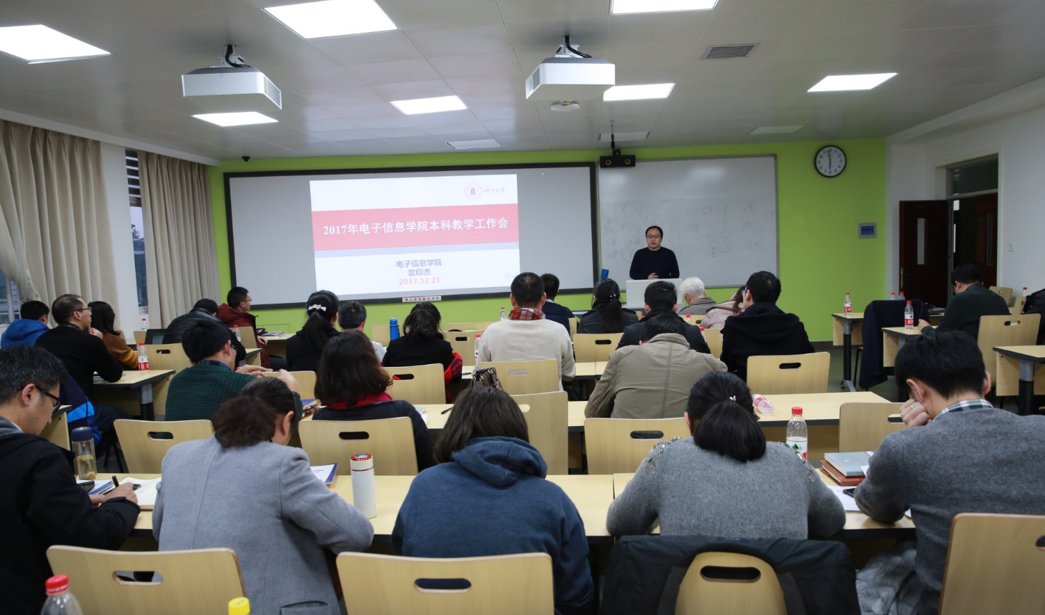 审核评估近期工作重点进行了布置,希望全院教师都要加强认识,做好教育部本科教学工作审核评估的准备。然后,雷印杰副院长介绍了期末考试基本事项,强调全院教师要进一步加强考风考纪教育,切实做好期末考试各项工作。最后,雷印杰副院长还通报了学校关于教材建设与选用工作、本科毕业论文(设计)要点的相关政策和要求。