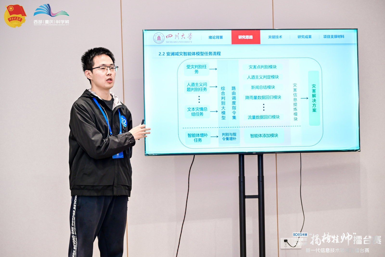 、全国学联共同主办的第十九届“挑战杯”竞赛2025年度中国青年科技创新“揭榜挂帅”擂台赛“—“新一代信息技术”主擂台赛在重庆举行,吸引了全国378所高校1250余支团队2万余名大学生及青年科技人才参与,榜题数量、参赛规模、作品数量均位居全国各领域擂台赛第二。