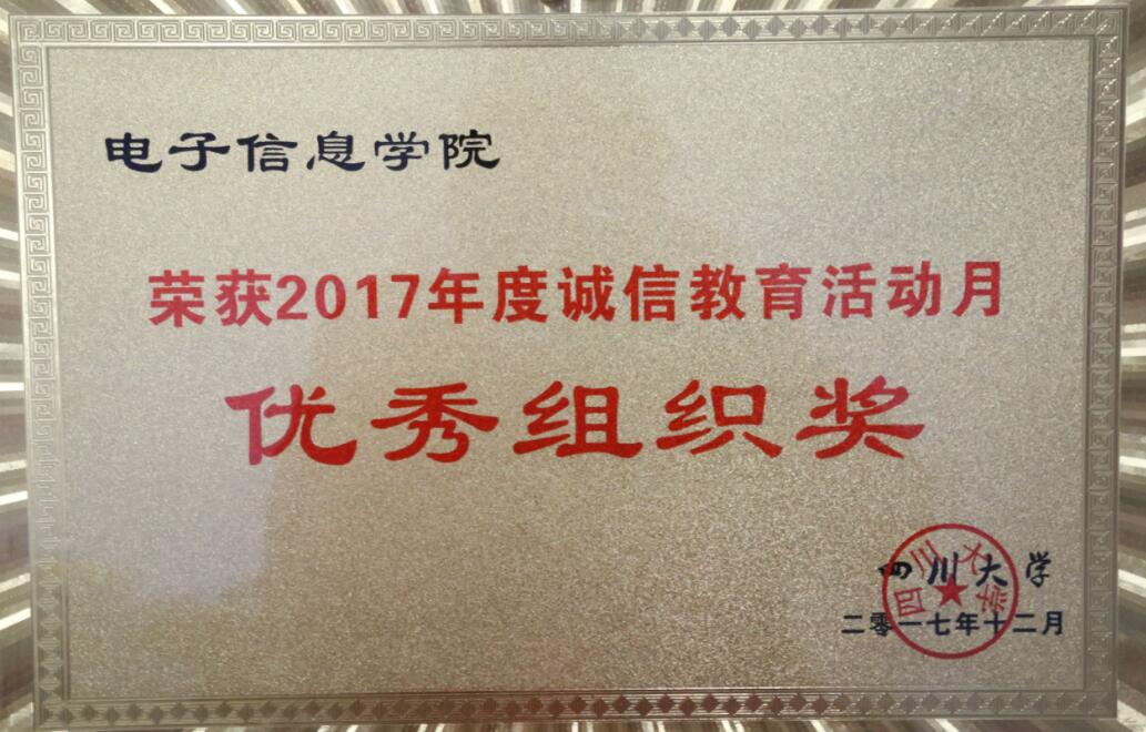 获得了四川大学2017年度诚信教育活动月“优秀组织奖”;