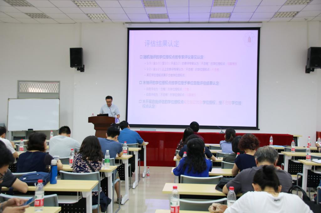 即将接受评估的五个授权点。详细讲解了本次评估工作的基本安排,明确了各个学位点的召集人和具体责任人,重点介绍了学位授权点评估时间进度安排,召集人的主要责任,以及各个分工工作中教职工的责任,各种支撑材料的具体要求。