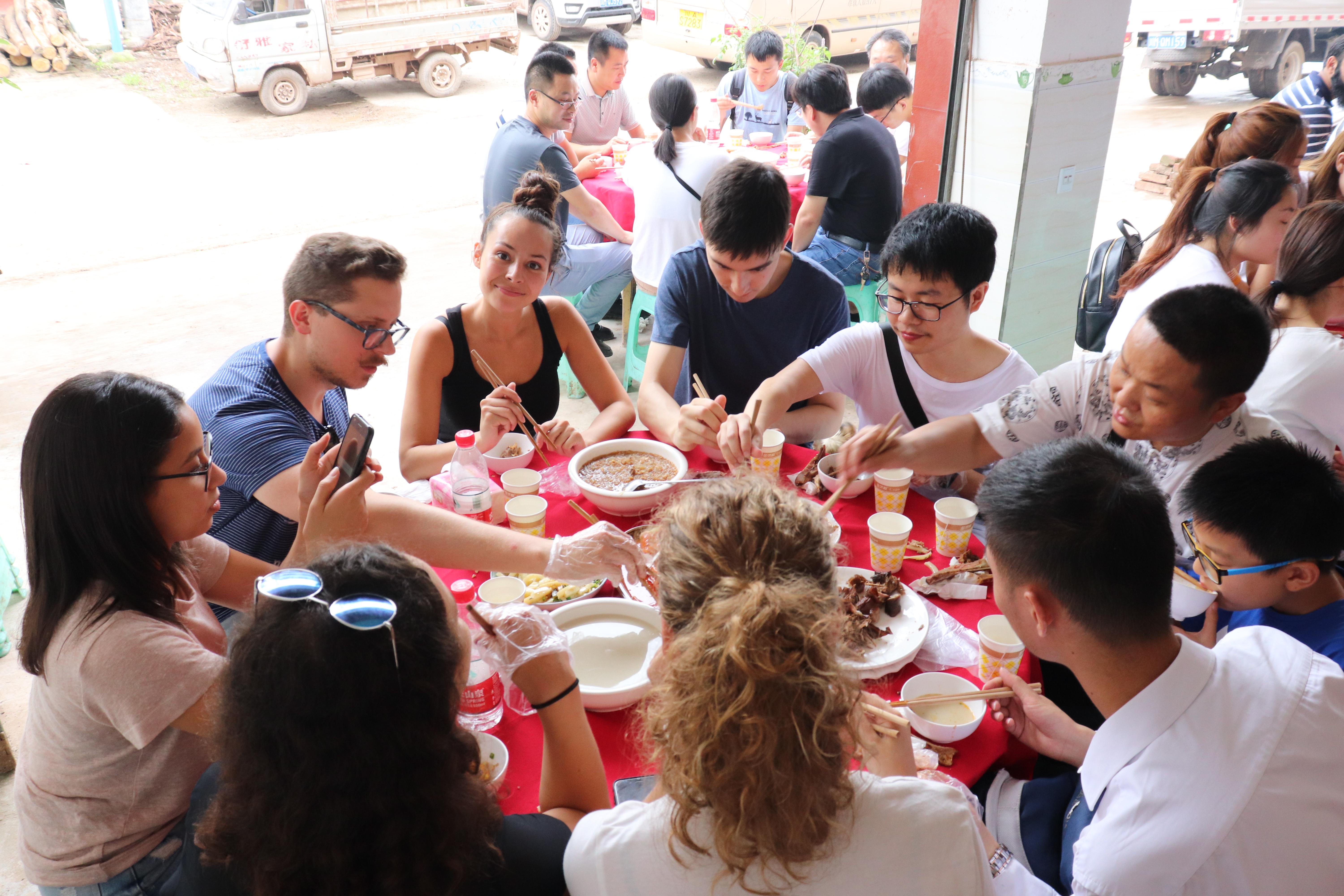 在亲身参与了白鹤村的民乐表演之后,交流营的老师和同学们来到了魏家坝村一起吃坝坝宴,交流营的学生在此之前基本没有体验过中国传统农村坝坝宴,他们对中国的传统美食很感兴趣,纷纷拿起手机拍照纪念,饭后交流营的同学们都纷纷竖起了大拇指表达对中国传统美食的赞美。8bo即时比分