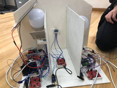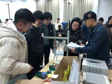 参赛队伍及所有评委按预定时间到达测试地点,比赛正式开始,两个类别作品的评测工作都井然有序地开展着。创意类参赛队伍派出代表,对小组研究成果作了详尽的介绍说明及PPT展示,将各队集思广益、天马行空的设想都完美的展现了出来,充分体现了我校学生对高科技的创新及憧憬;作品类参赛队分为了三个评审组,各参赛队直接向评审专家展示成品实物,并解说自己的设计原理、基本功能及应用拓展;评审专家们也针对作品的优缺点做出了中肯的点评。