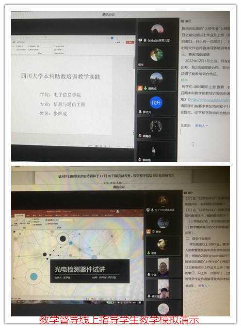 请了教学经验丰富、多次参与培训的教学督导教授们承担。在腾讯会议线上平台每位学员不限题目及形式就一个“问题”或“理论”进行5分钟的教学模拟演示,教学督导对学员进行点评、指导,并热情传授课堂教学经验。