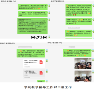 重点工作,务实落实督导工作,平时在督导工作群中及时交流,在听课督导过程中建言老师们抓住课堂教学落实立德树人的根本任务,言传身教,并对授课教师的教学内容、教学态度、教学水平、教材选用、教学质量等进行评价,检查学生的学习、出勤、纪律情况。希望督导们要重点对培养参加教学竞赛的老师、上新课的青年老师及学生评教排名靠后的老师课堂帮扶,加强对理论、实验课程进行全覆盖的听课督导。