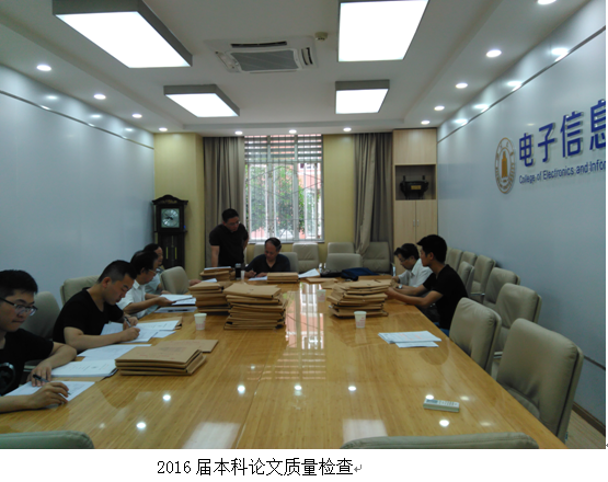 于2016年7月6日在基教A112会议室组织了本院督导专家对2016届85位同学的本科毕业论文(设计)进行了检查工作。所抽查的同学涉及电子信息工程、电子信息工程(卓越工程师班)、电子信息科学与技术,电子科学与技术、光信息科学与技术和信息安全共6个专业,基本保证了每位指导老师检查一本。