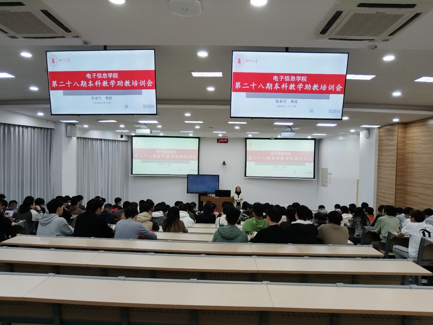 在望江基教楼C202教室,举办了第28期本科教学助教培训。104名研究生报名参加了此次培训。教学督导张蓉竹教授作为培训导师参加了培训工作。