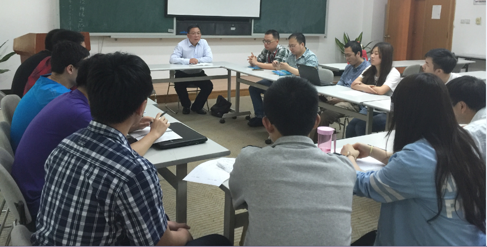主管教学工作的副院长周新志教授、2012级本科辅导员陈晓娟老师、长虹培训中心的罗冬梅老师以及部分毕设指导老师,卓越班在长虹实习的全体同学汇报了前期毕业论文(设计)的工作。