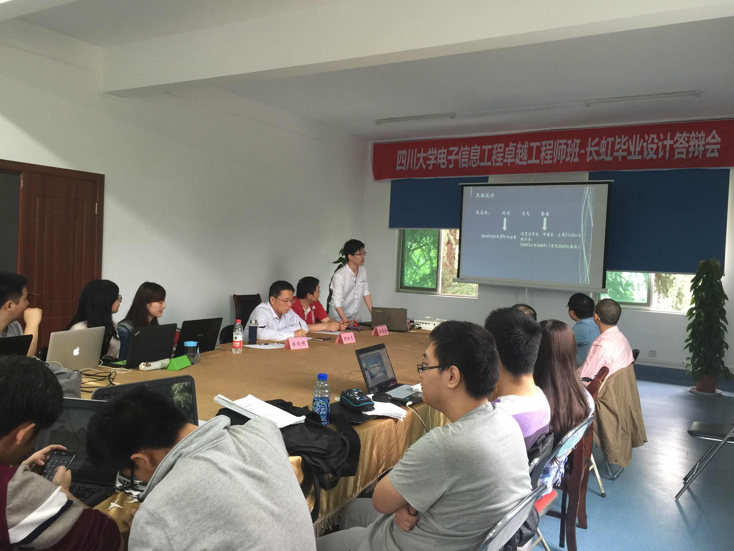 主管教学工作的副院长周新志教授、徐家品教授、党委陈笃海副书记、2012级本科辅导员陈晓娟老师、长虹培训中心的罗冬梅老师、蔡琳老师、李力老师,卓越班在长虹实习的14名学生全部参加了本次答辩。