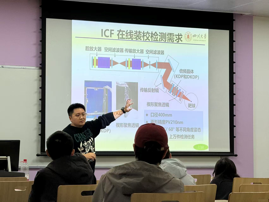 2025117日下午1630,江安校区一教A103座无虚席,光学工程系“走进光学”科普系列讲座迎来了第二场精彩活动。本场讲座以《精密光学检测:从哈哈镜原理到纳米级测量》为题,带领同学们从生活中熟悉的“哈哈镜”出发,走进严谨而奇妙的精密测量世界。