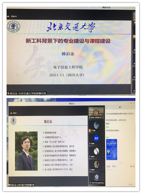 特邀北京交通大学国家级教学名师陈后金教授作为主讲嘉宾通过在线做了“新工科背景下的专业建设与课程建设”的主旨报告,与参会者进行了深入的交流和探讨。