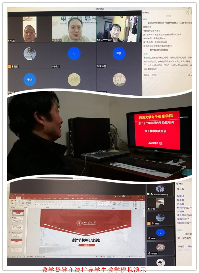 聘请了教学经验丰富、多次参与培训的教学督导龙建忠、罗代升教授承担。在线上平台每位学员不限题目及形式就一个“问题”或“理论”进行5分钟的教学模拟演示,教学督导对学员进行点评、指导。