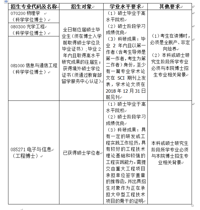 备注:1.本单位申请考核制招生指标预计招收科学学位博士5人,工程博士10人。