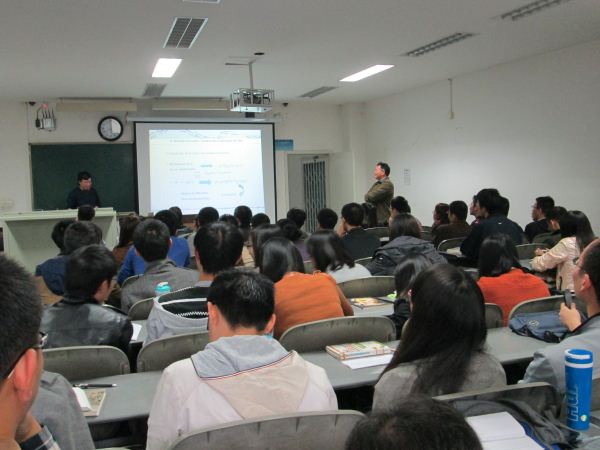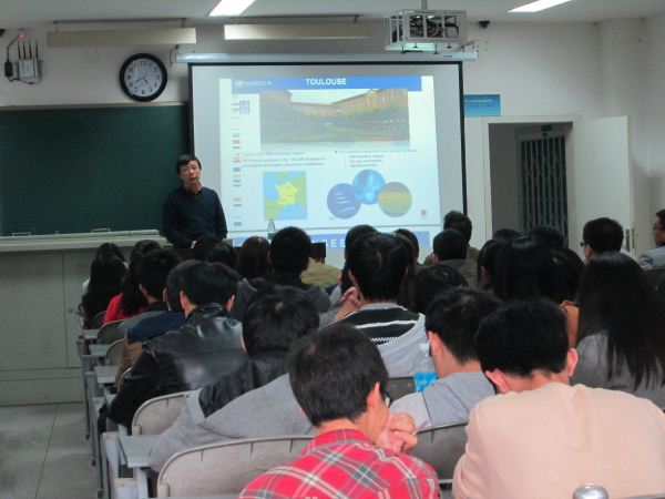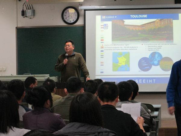 本次讲座,陶教授制作了精美的PPT,为大家介绍了法国图卢兹大学的硕士培养规划,欢迎我们的同学去图卢兹大学交换学习,同时还介绍了关于微波波导滤波器应用的一些新的计算方法。期间黄卡玛院长也给大家分享了自己在法国学习后的感受与体会,幽默风趣的语言,使现场气氛十分活跃。整个论坛持续两个小时,最后同学们与陶教授的提问交流气氛融洽,为整个论坛画上一个圆满的句号。