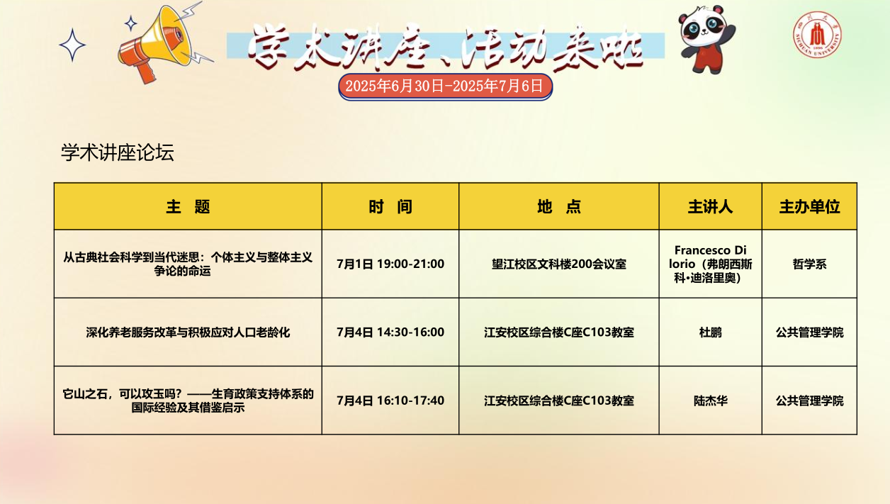2025年6月30日-2025年7月6日学术讲座、活动安排