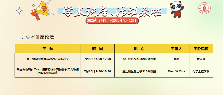 2025年7月7日-2025年7月13日学术讲座、活动安排