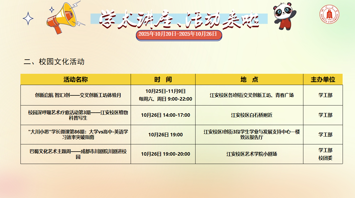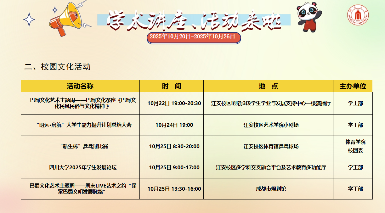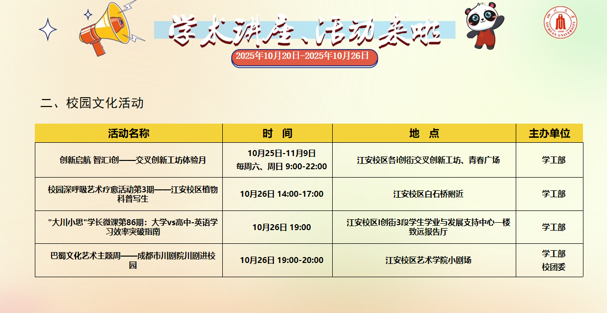 2025年10月20日-2025年10月26日学术讲座、活动安排