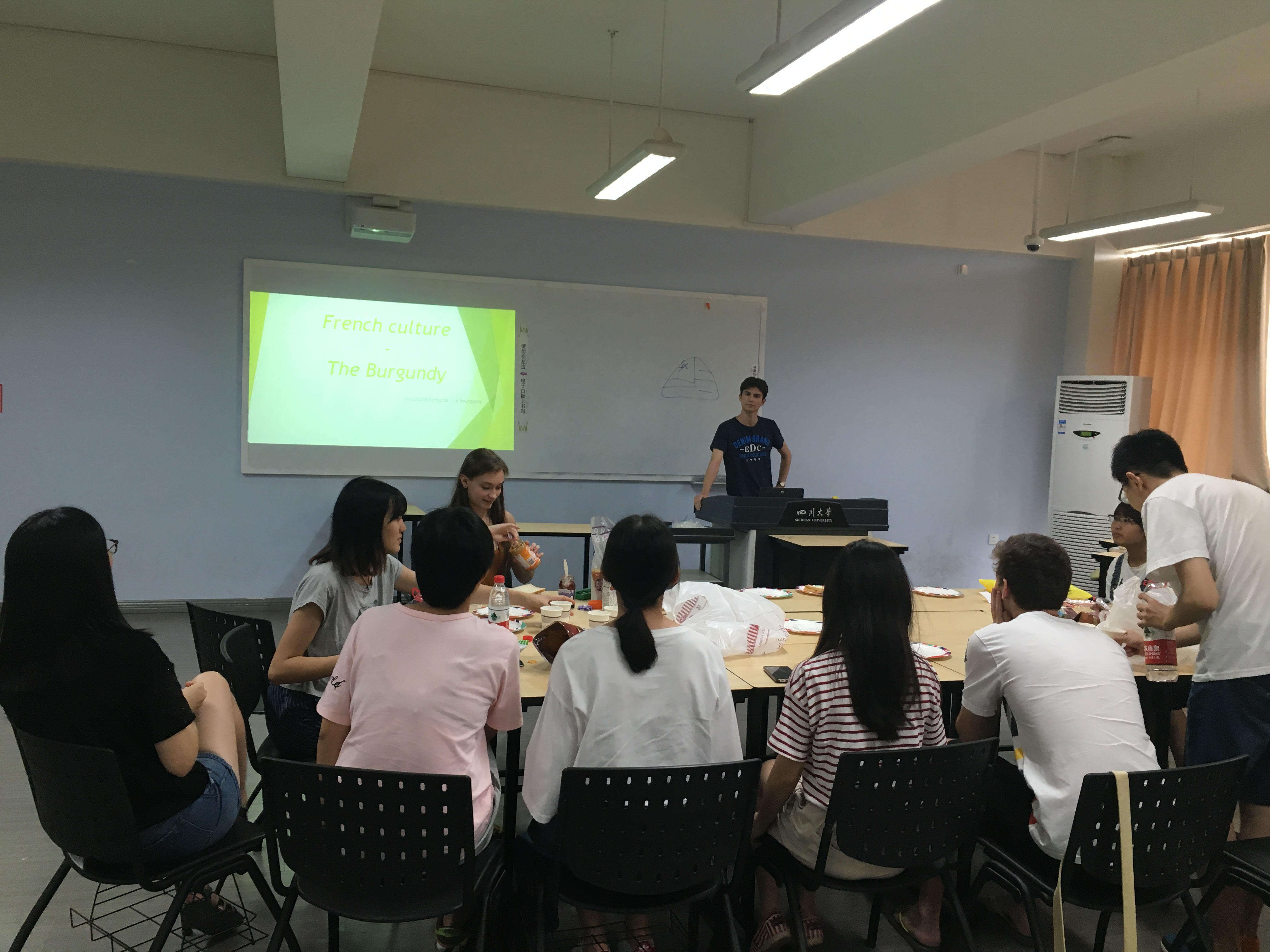 参加交流营的第二组同学与来自国外的留学生开展了一场由国外留学生介绍他们国家和家乡文化的交流展示活动。