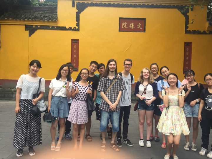 三点左右到达文殊院,面对佛教胜地,同学们都很虔诚的祈福,并且互相交流着国内外不同的宗教文化,体会到不同国家的文化差异。他们也有自己信奉的宗教,在面对我们中国的佛祖时依然虔诚。