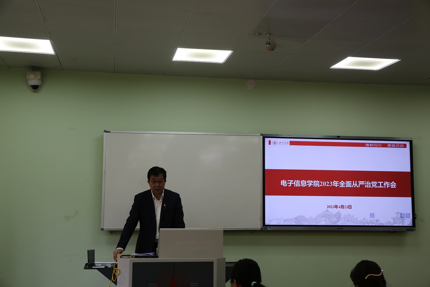 党委书记邰明松从校党委书记甘霖就学校2023年全面从严治党工作提出的5点要求,校党委副书记、纪委书记,国家监委驻四川大学监察专员张卓就进一步加强党风廉政建设提出的四个方面要求,以及校长汪劲松就贯彻落实好本次会议精神作的三点强调等方面传达了学校2023年全面从严治党工作会会议精神。并全面通报了学校2023年全面从严治党工作要点。