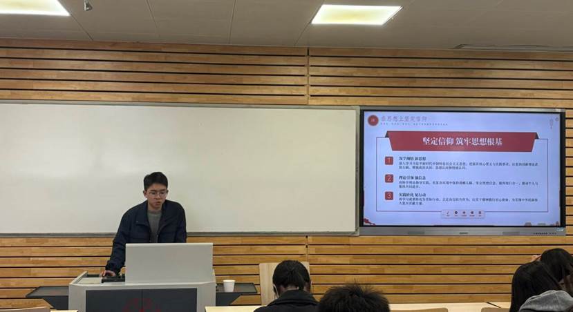 刘钰同学从时代背景与全局意义出发,重点介绍了“十五五”规划在科技创新体系建设、产业结构优化、数字政府与数字社会建设等方面的前瞻性布局。他强调,当前新一轮科技革命和产业变革加速演进,全球科技竞争日趋激烈,为电子信息产业带来新的挑战与重大战略机遇。在此背景下,电子信息专业青年应进一步强化工程实践能力与科研创新意识,努力提升自主学习、跨学科思考和解决复杂工程问题的能力。同时,要自觉树立科技报国、服务人民的使命担当,在学习、科研和未来职业选择中主动对标国家需求,将全会精神切实转化为实际行动。