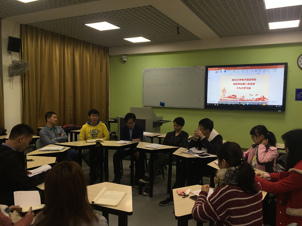 2014级本科第二党支部关于“十九大”学习的党组织生活在望江三教112教室开展,本次组织活动针对十九大的关键词“不忘初心,牢记使命”,对社会主义新时代、党员党性等内容进行了学习和讨论,支部全体党员积极参与并感受了党组织生活。