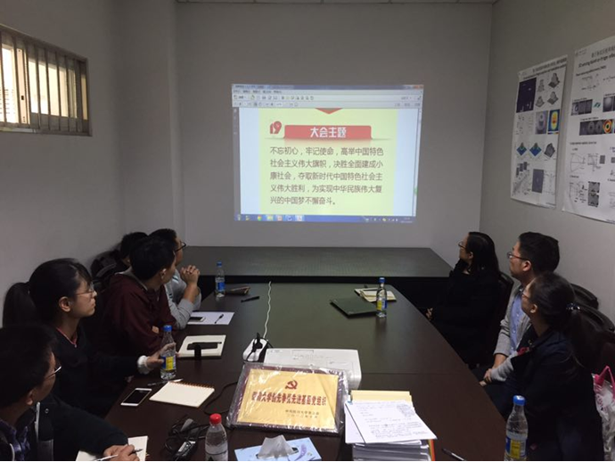 光电教工党支部在四川大学望江校区基教A119会议室召开了“十九大精神”学习座谈会。原党支书张启灿教授、换届选举产生的新任党支部委员:书记李玮副教授、副书记兼组织委员邓欢副教授以及宣传委员钟哲强老师和支部其他党员一起学习了《决胜全面建成小康社会,夺取新时代中国特色社会主义伟大胜利》的报告,该报告深入浅出地围绕十九大报告内容,宣扬了十九大精神。