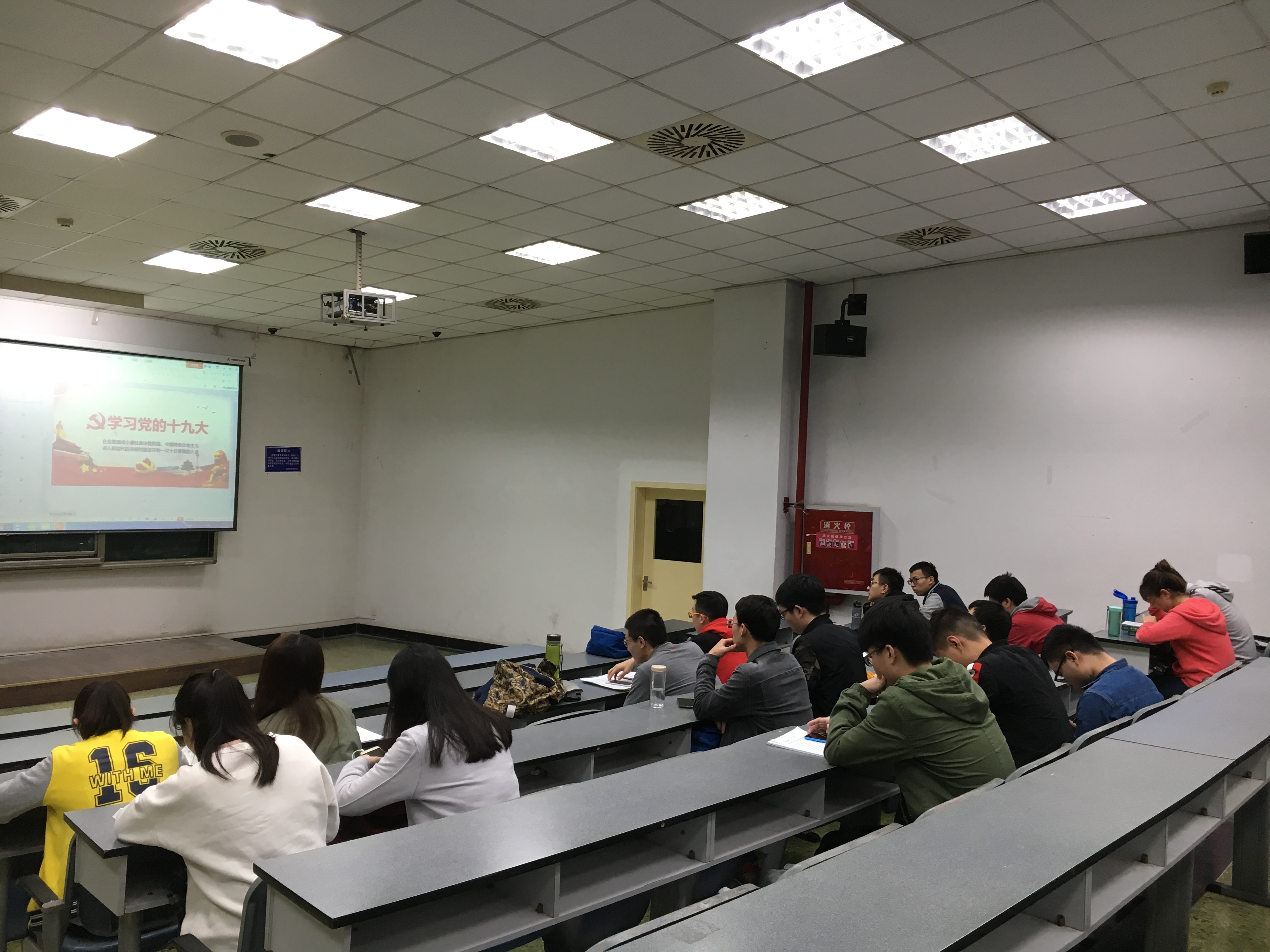 2014级本科学生第一党支部在基教C202组织学习了中国共产党第十九次全国代表大会习近平总书记的报告,共同学习大会主要内容和精神。本次组织生活由支部组织委员汪志琴同志主持,全体支部党员参加。