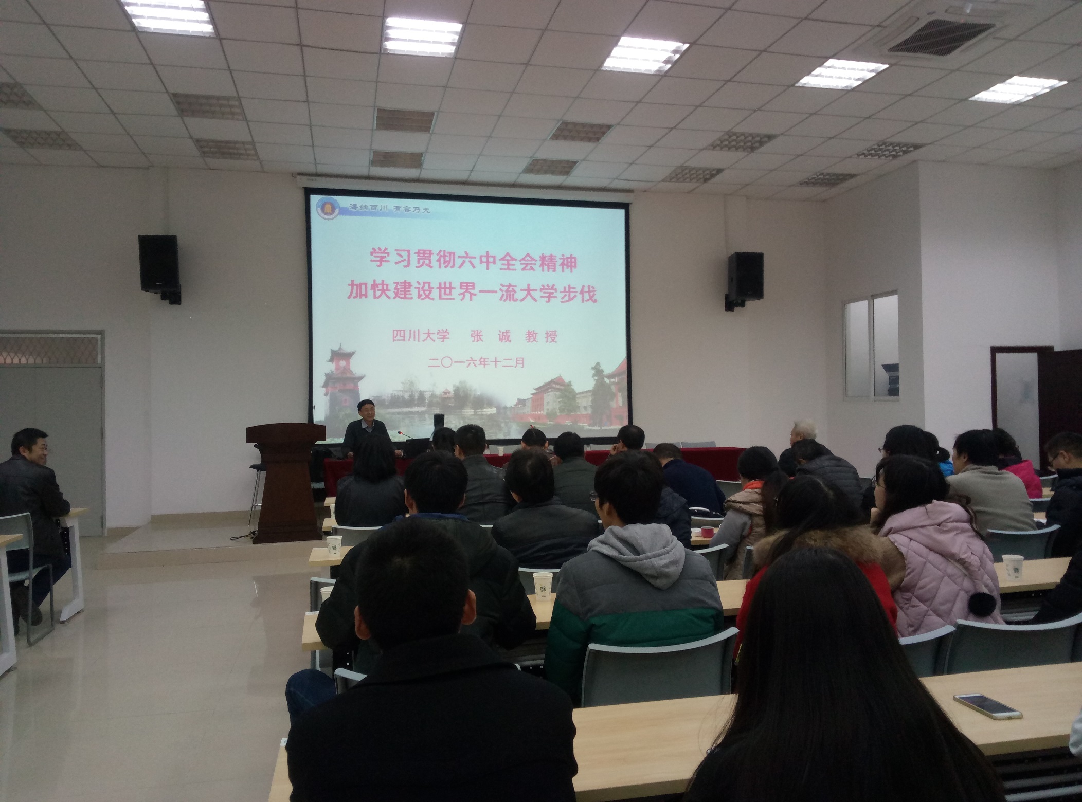 党委在望江校区五教附一楼101会议室举行“党的十八届六中全会精神宣讲报告会”,特邀学校宣讲团成员张诚教授主讲。报告会由院党委书记蒋斌同志主持,8bo即时比分