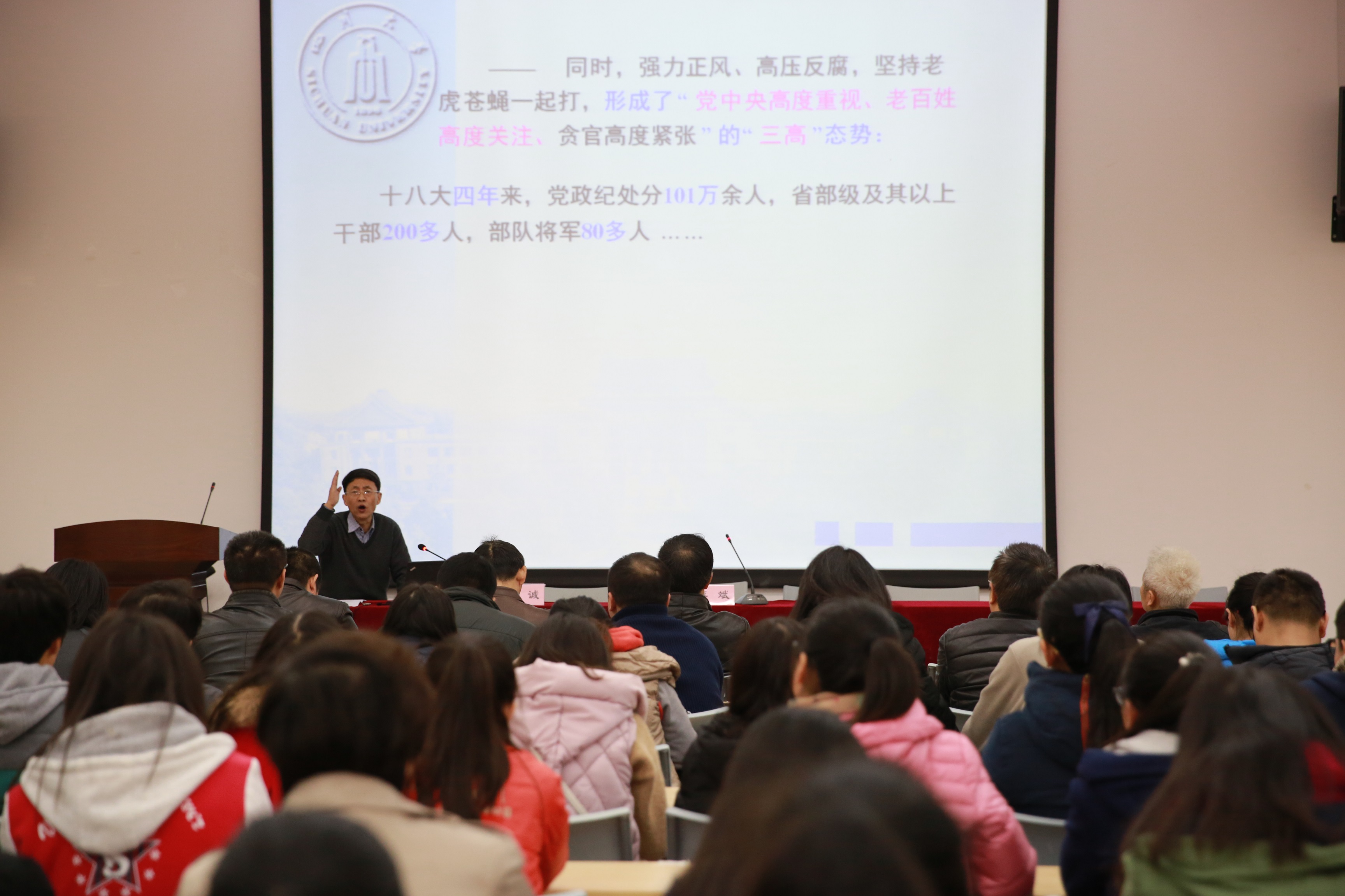 领导班子成员和党员师生职工参加了宣讲报告会。