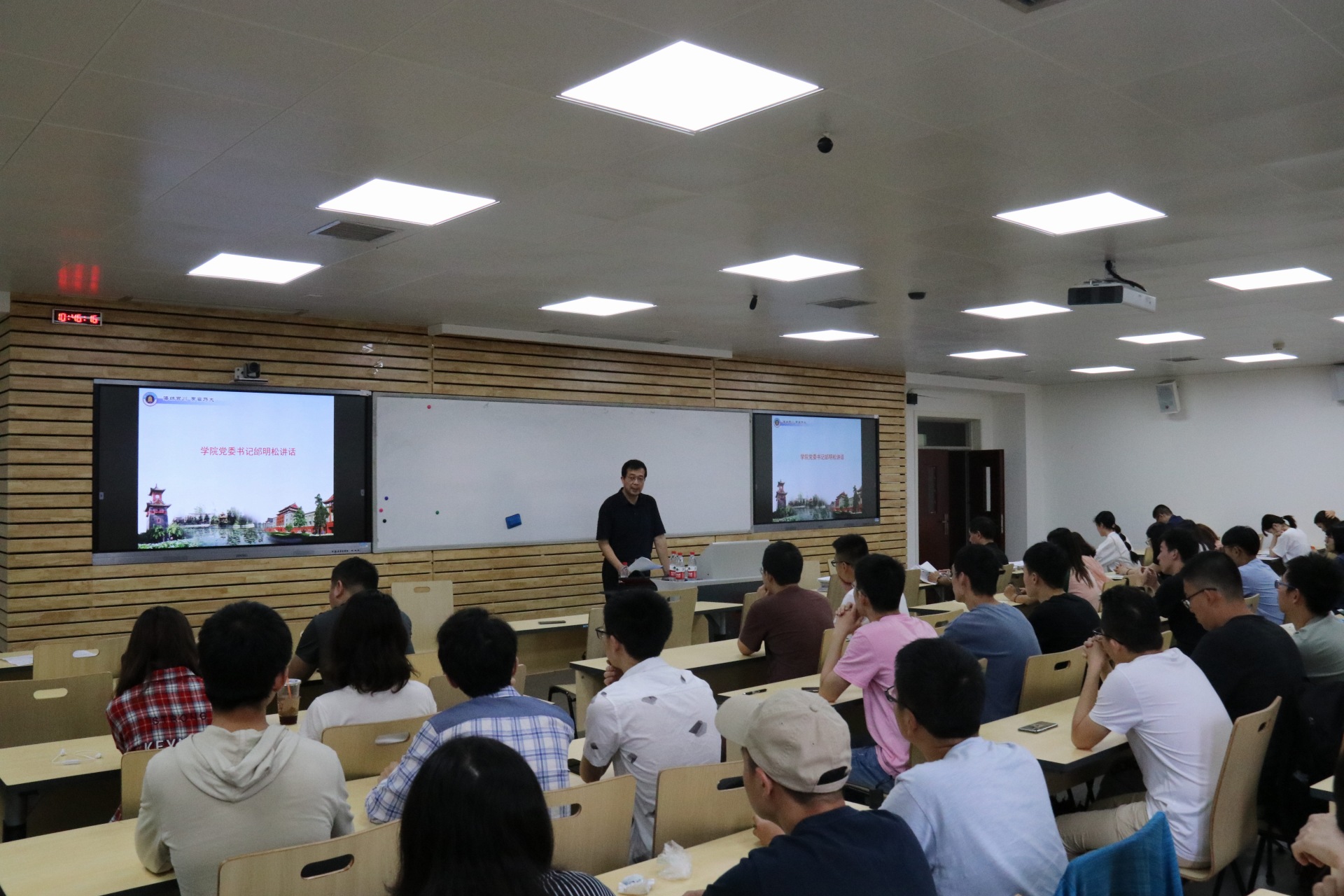 党委书记邰明松同志为毕业生党员送上了寄语,他希望同学们在以后的道路上,一是作为党员要坚定马克思主义信念,树立远大理想,热爱祖国;二是要发扬艰苦奋斗的精神,不畏惧艰难险阻,在奋斗实践中练就过硬本领,勇于担当时代责任,砥砺前行,建功立业;三是坚定党员信念,牢记身份,做好毕业生的党员组织关系转移工作。