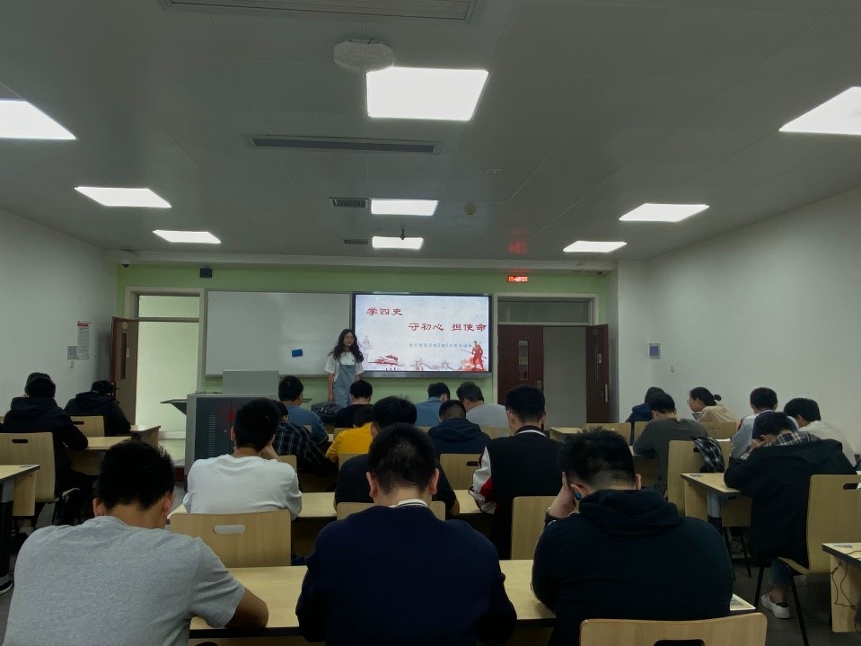 2018级电子信息工程二班在基础教学楼A座514举办“学四史,担使命”主题团日活动。