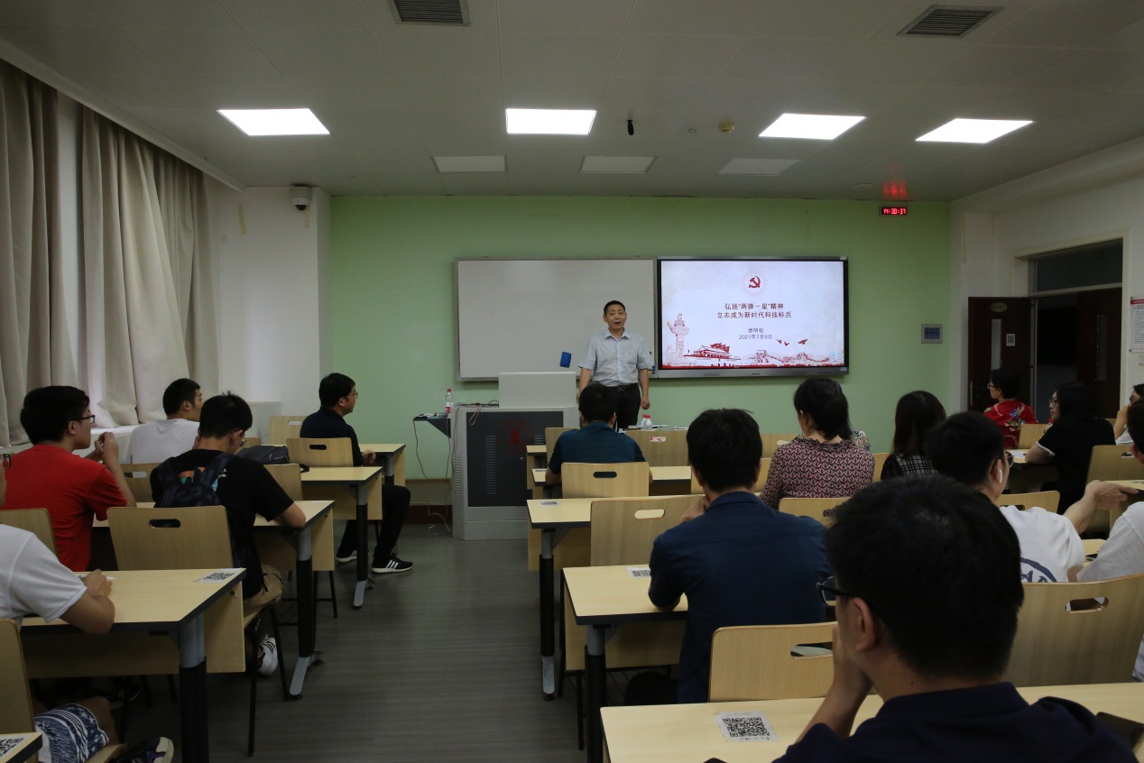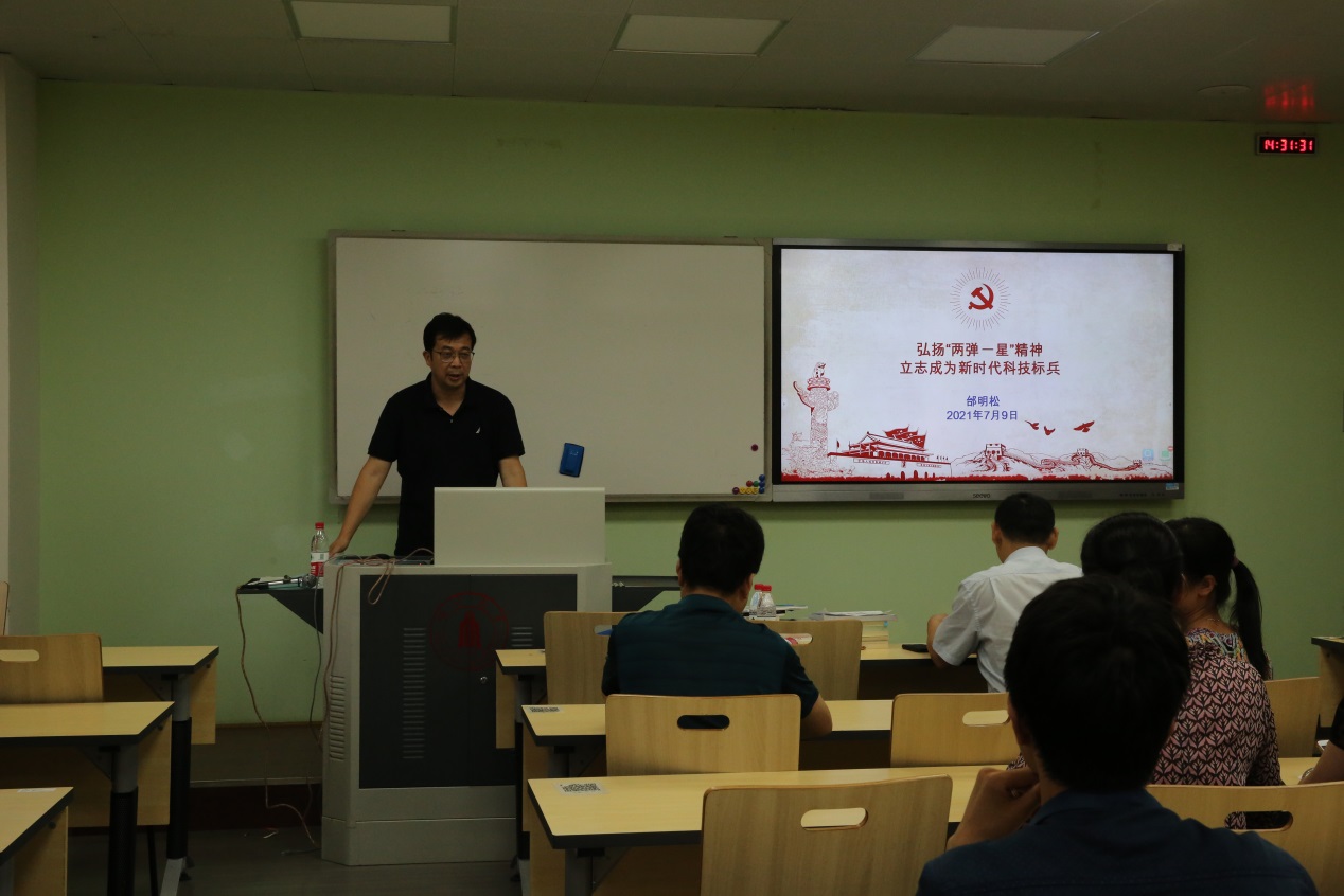 党委书记邰明松作了题为《弘扬“两弹一星”精神立志成为新时代科技标兵》的专题党课。