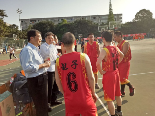 篮球代表队由工会吴小强老师担任领队,黄卡玛老师担任教练,队员有李军华老师、李小舜老师、任超老师、李小伟老师、张弘老师、赵悟祥老师、王君老师和谢明老师。经过运动员们一个个回合的激烈厮杀、奋力拼搏。