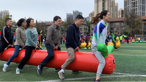 老师们参加的团体项目有:毛毛虫竞速、绕杆射门青年组、绕杆射门中年组、抛球入筐、12*60米男女混合迎面接力、4*100男子接力赛。老师们在这些团体项目中,团结合作,奋勇争先。老师们对运动会这类团体活动非常认同,并期待更多丰富多彩的活动去参与。