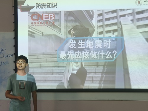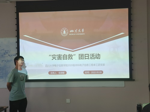 本科2020级9班团支部在江安校区一教A401开展活动,对防灾减灾知识及基本应急避险技能进行了详细介绍。