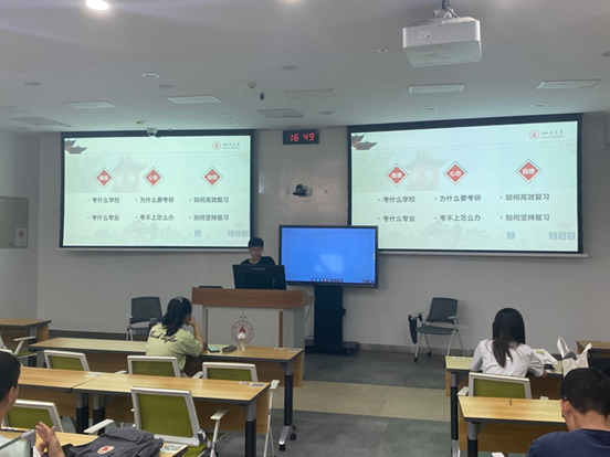2018级7位保研、考研成功至北大、浙大、电科、川大、北邮等热门高校的同学介绍有关知识,分享经验故事。本次分享会有200余名同学参会,活动取得圆满成功。