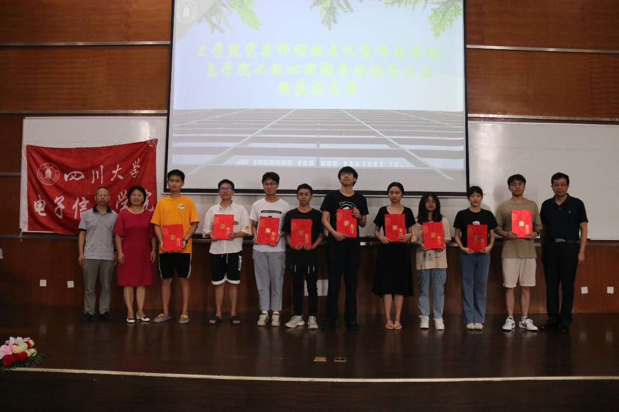 心理辅导站站名及站徽征集活动的九组获奖名单。然后,王英梅主任、邰明松书记、廖勇明副书记为九组获奖同学颁奖,并祝贺获奖同学。