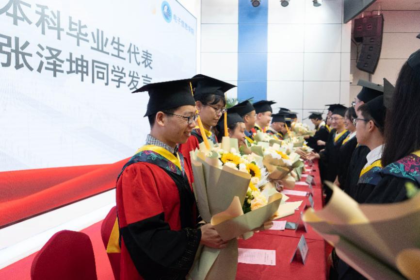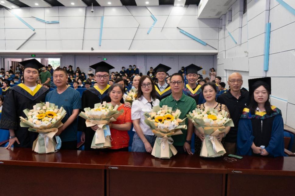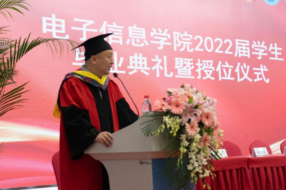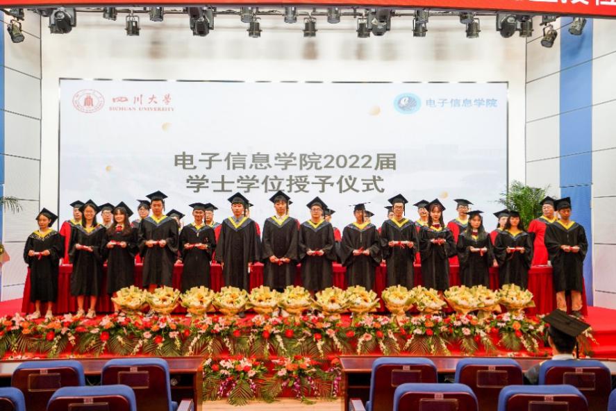 党委书记邰明松,党委副书记廖勇明,副院长张启灿、雷印杰、卿粼波,教师代表何小海、郭庆功、梁厚昆、杨晓敏、汪莎、李小伟、钟哲强、宁芊、王策,辅导员何阳与陈林老师,以及毕业生家长代表和全体2022届毕业生参加典礼。副院长雷印杰主持典礼暨授位仪式。