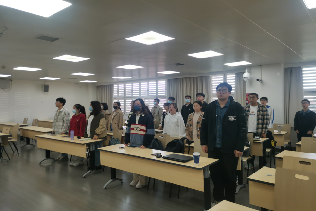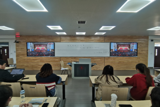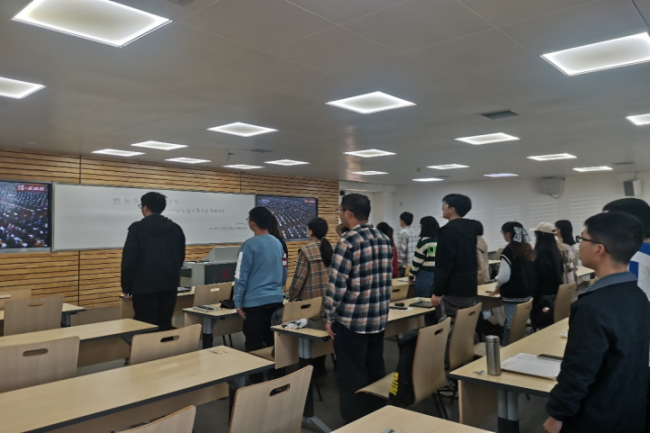 2020级本科第一支部全体预备党员在四川大学望江校区基础教学楼A604观看现场直播。