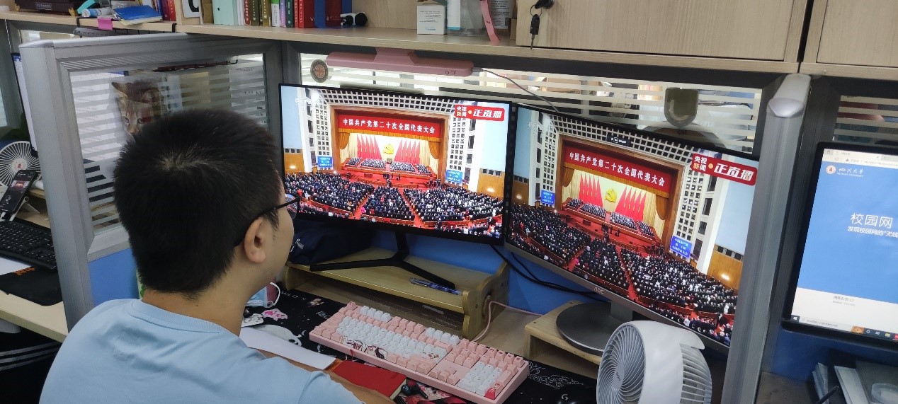 2020级硕博第三党支部广泛组织收看大会直播,掀起了学习党的二十大精神热潮。大家一致认为,作为新时代的青年学生,要接过历史的接力棒,坚定不移听党话、跟党走,做有理想、敢担当、能吃苦、肯奋斗的新时代好青年,为开启社会主义现代化建设新篇章作出自己的贡献。