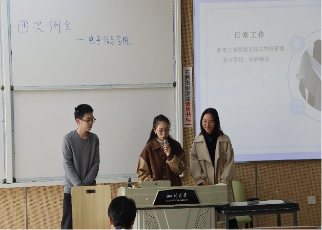 2023年3月5日下午2点整,电子科技园第四次例会在四川大学江安校区综合楼C505举行。出席例会的有电子科技园主席团人员、各部门部长及副部长、科技园全体干事。