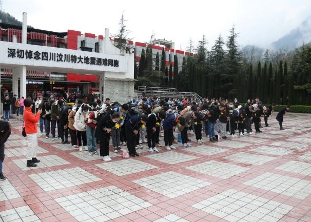此外,同学们还在活动现场举行了庄严肃穆的纪念活动,共同缅怀那些为救援和重建付出生命的先烈和牺牲的群众,并向其表达了深深的哀思和敬意。