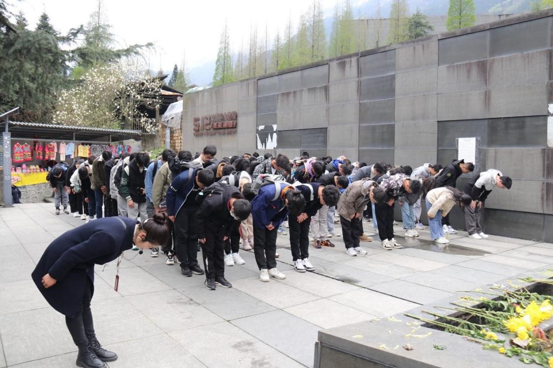 首先,支部来到了5.12汶川特大地震漩口中学遗址。在漩口中学遗址的门口,全体党员整齐列队站立,在讲解员动情的讲述下感受抗震精神,在伤痛中向汶川特大地震罹难同胞默哀,向在抗震救灾中捐躯的英雄三鞠躬并敬献鲜花。
