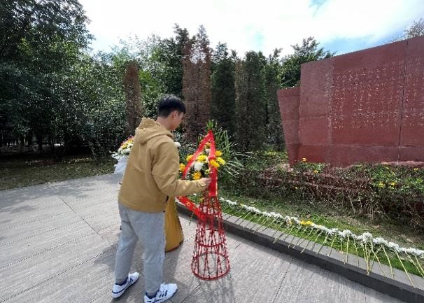 本科2021级第一党支部和本科2022级第一党支部的同学在四川大学江安校区烈士碑前进行了献花等一系列祭奠活动。