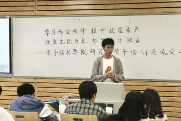 会议伊始,何阳老师对在场的学生干部提出了要求,并希望大家充分发挥学生干部的榜样力量,真正实现自我管理、自我教育、自我监督、自我服务。随后,研分会各中心负责人就研分会工作的开展情况进行了介绍,并组织在场的同学深入学习贯彻全国两会精神,大家纷纷表示在日常的学习、生活、工作中自觉践行两会精神。紧接着,多位优秀的班长、党支书分享了自己的学生工作经验,并交流探讨如何在班团党支中做好组织建设及策划举办更多有意义的学生活动。