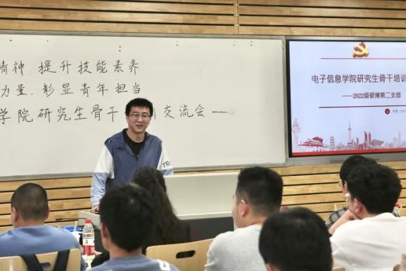 分团委副书记、研究生分会指导教师、2022级辅导员何阳老师,2021级兼职辅导员陈鹏冰、2022级兼职辅导员王伟丁,研究生党支部书记、党员学长与各班班长、团支书、宣传委员,及研究生分团委、研分会成员参加了此次会议。