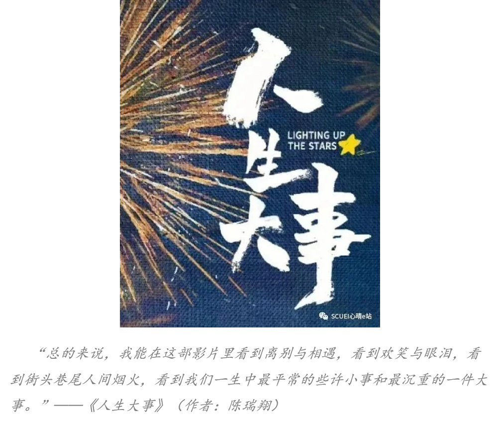 本次活动以线上征集、线下评选的方式进行,吸引了众多同学投稿,同学们围绕自己喜爱的电影进行影评写作与电影推荐,创作并推荐了许多优秀作品。经过观影活动组委会评委们的严格评审,共评出一等奖1组、二等奖1组、三等奖2组。其中,陈瑞翔同学以电影《人生大事》的观影心得获得一等奖、王凯明同学以电影《霸王别姬》的观影心得获得二等奖,另外还有2位同学获得三等奖。