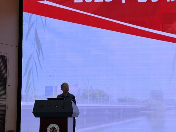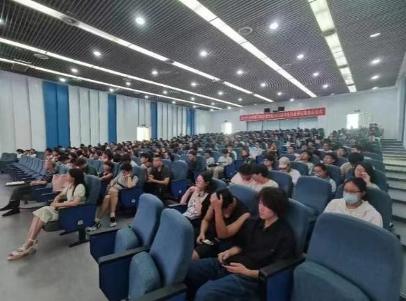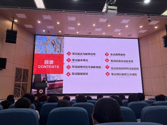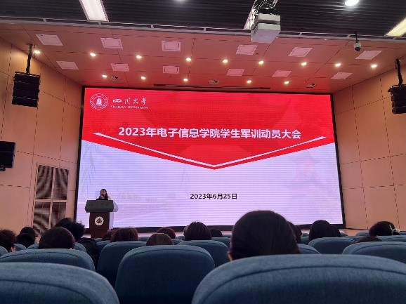 本科2022级辅导员朱婧老师和党委廖勇明副书记在四川大学江安水上报告厅举行了2022级本科学生的军训动员大会。