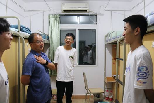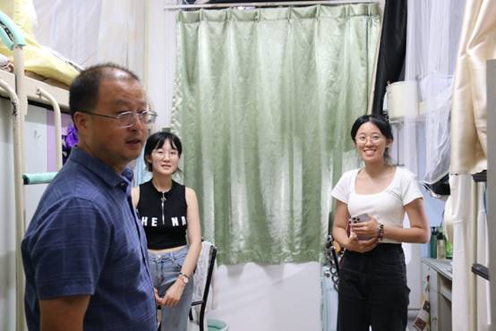 副院长张启灿带队走访新生寝室,2023级本科辅导员陈林、申鑫参加。